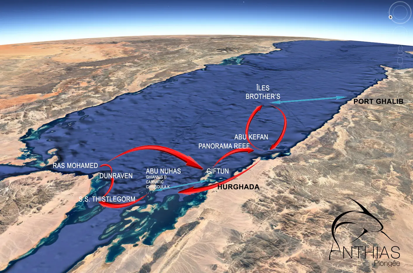 Le séjour sera rythmé par le circuit “Légendes & Brothers”, qui réunit certains des plus beaux sites de la Mer Rouge. Épaves mythiques, récifs intacts et faune exceptionnelle accompagneront vos plongées. Ce cadre inspirant se prête idéalement à l’apprentissage de la médecine hyperbare et au partage d’expériences entre professionnels.